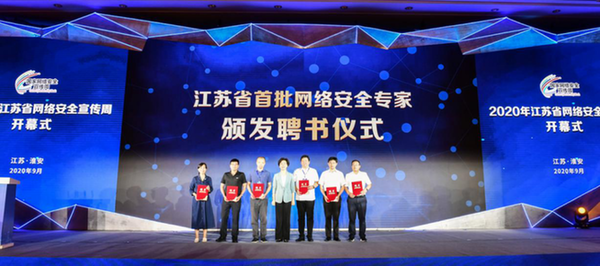 在2020年江苏省网络安全宣传周开幕式上,主办单位为邬江兴院士等10名江苏省首批网络安全专家颁发了聘书,同时为南京烽火星空等15家省网络安全重点企业授牌。
