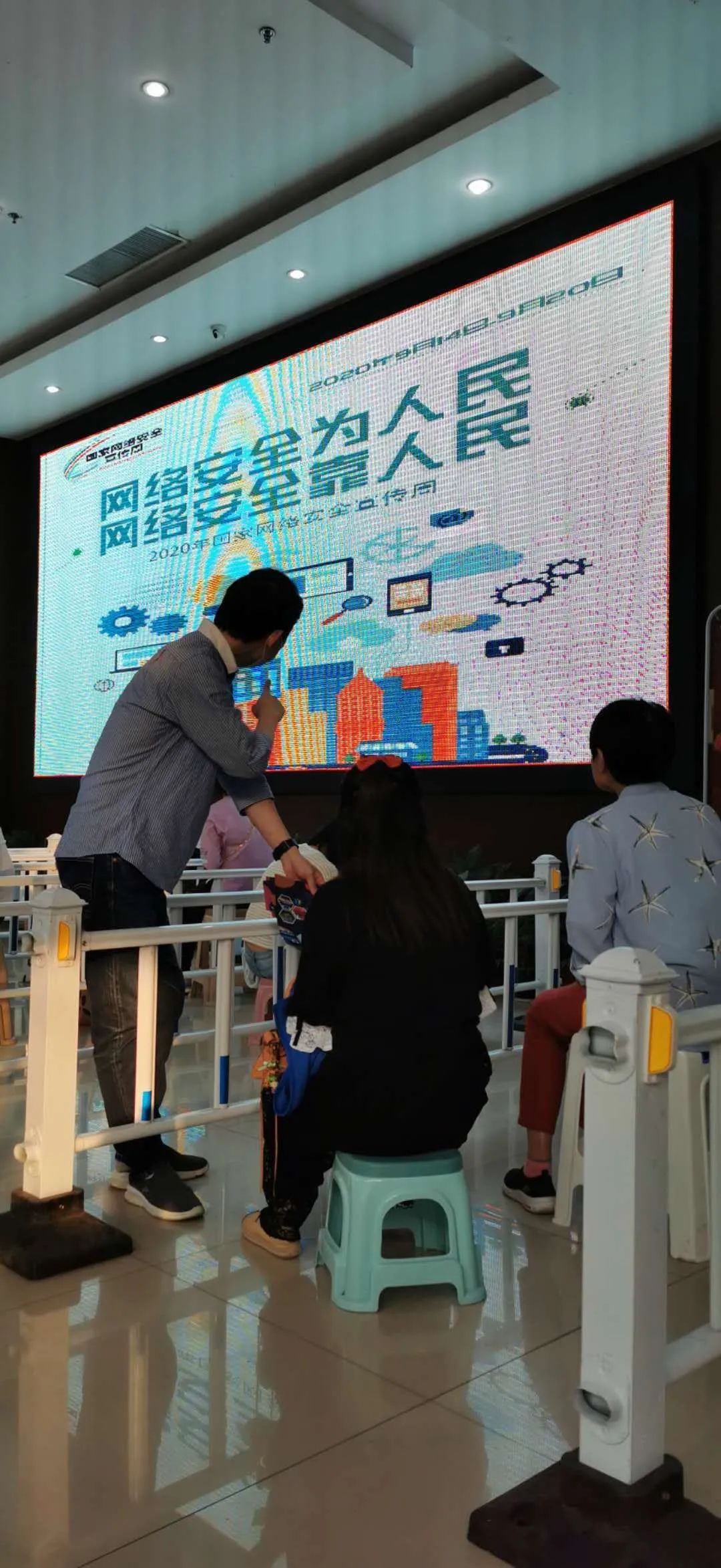 图 |青少年活动中心通过海报、大屏等媒介开展宣传,同时工作人员积极向青少年及家长宣传网络安全知识