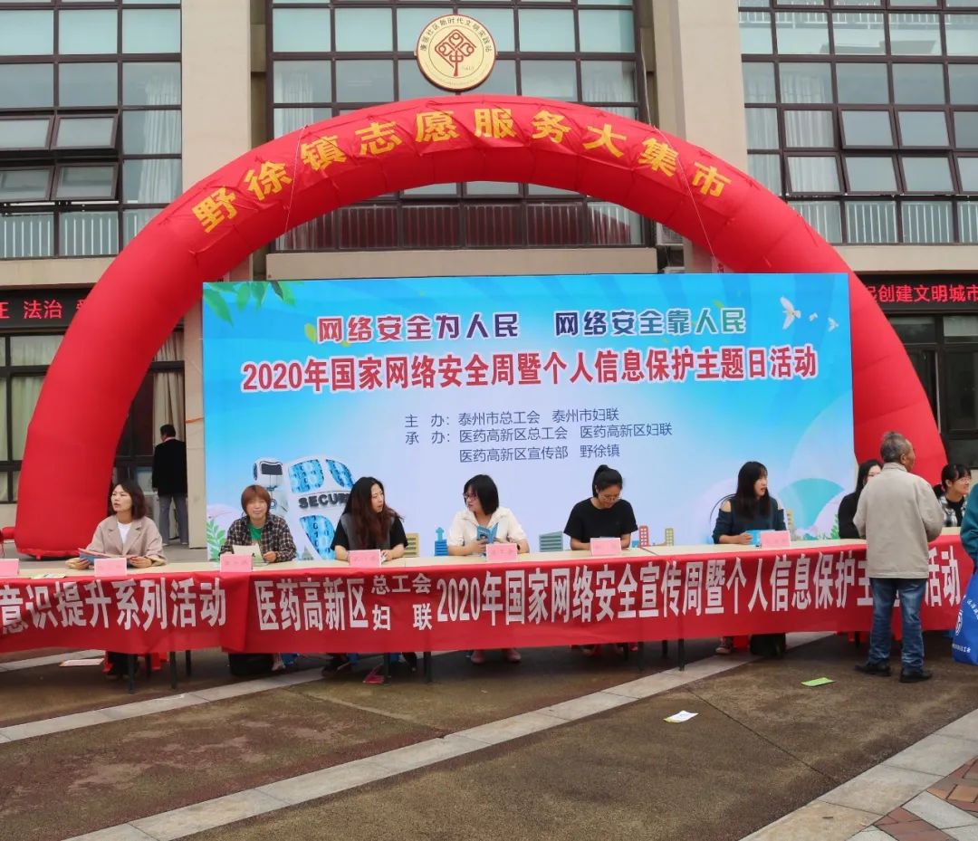 泰州市妇联联合市总工会开展“网络安全周”暨“个人信息保护日”宣传活动,本次活动由医药高新区妇联、区总工会承办。活动现场,巾帼志愿者们通过与群众面对面零距离讲解网络使用常见误区,使群众认识到提高网络安全意识、保护好个人隐私的重要性,时刻绷紧网络安全这根弦。
