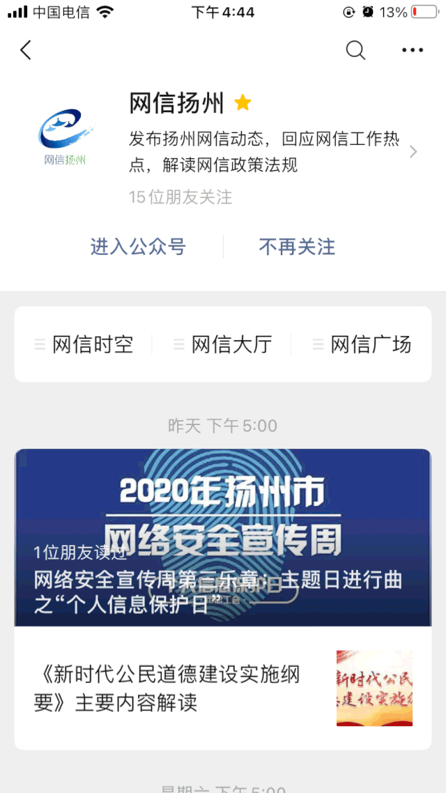 2020年网络安全宣传周期间,扬州市将分别举办“校园日、电信日、法治日、金融日、青少年日、个人信息保护日”等六大主题活动,真正实现了网安知识线下处处可见,线上随处可点。