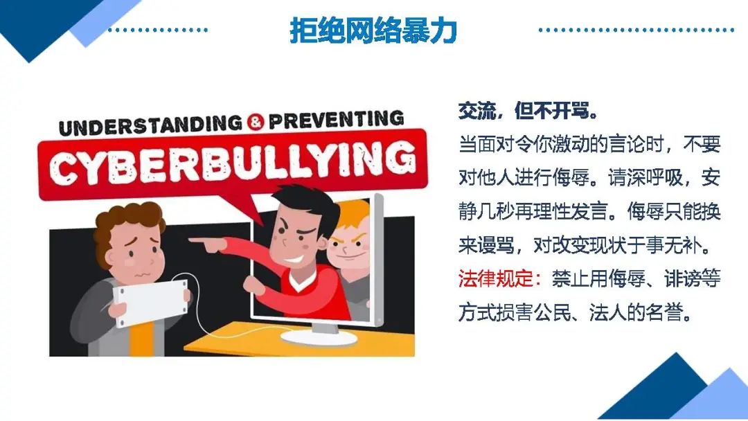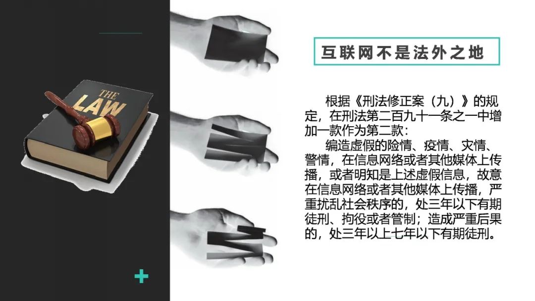 互联网是消息的集散地,也是公共舆论场,也已成为舆论斗争的主战场。官方、营销号、路人甚至职黑的各类信息充斥着网络,这就提醒我们的同学要以社会主义核心价值观作为底线,要有理智的辨析力,不断章取义,要善于分清真伪,特别是对于利用网络鼓吹推翻国家职权,煽动宗教极端主义,宣传民族分裂思想,教唆暴力恐怖活动的声音,要坚决抵制。
