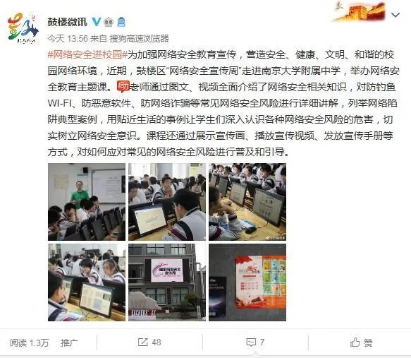在南京大学附属中学举办网络安全教育主题课,增强学生们学习网络安全知识的热情,全面提升青少年的网络文明素养。