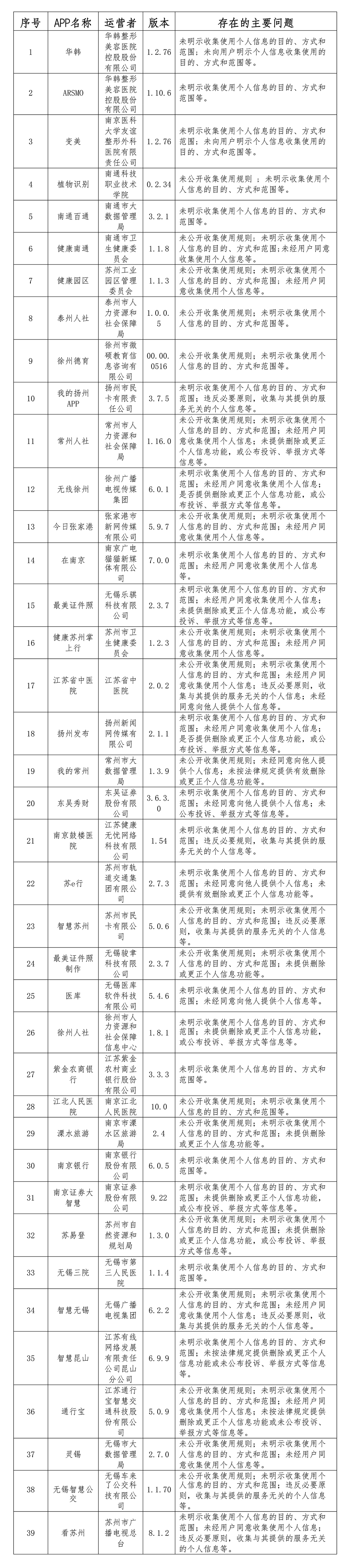 近期,针对人民群众反映强烈的App非法获取、超范围收集、过度索权等侵害个人信息的问题,江苏省委网信办、省公安厅、省市场监督管理局、省通信管理局依据《中华人民共和国网络安全法》《App违法违规收集使用个人信息行为认定方法》《常见类型移动互联网应用程序必要个人信息范围规定》等法律和有关规定,对省内重点App的个人信息收集使用情况进行了检测。现将前期通报未按要求整改的App予以下架,通报一批存在问题App。