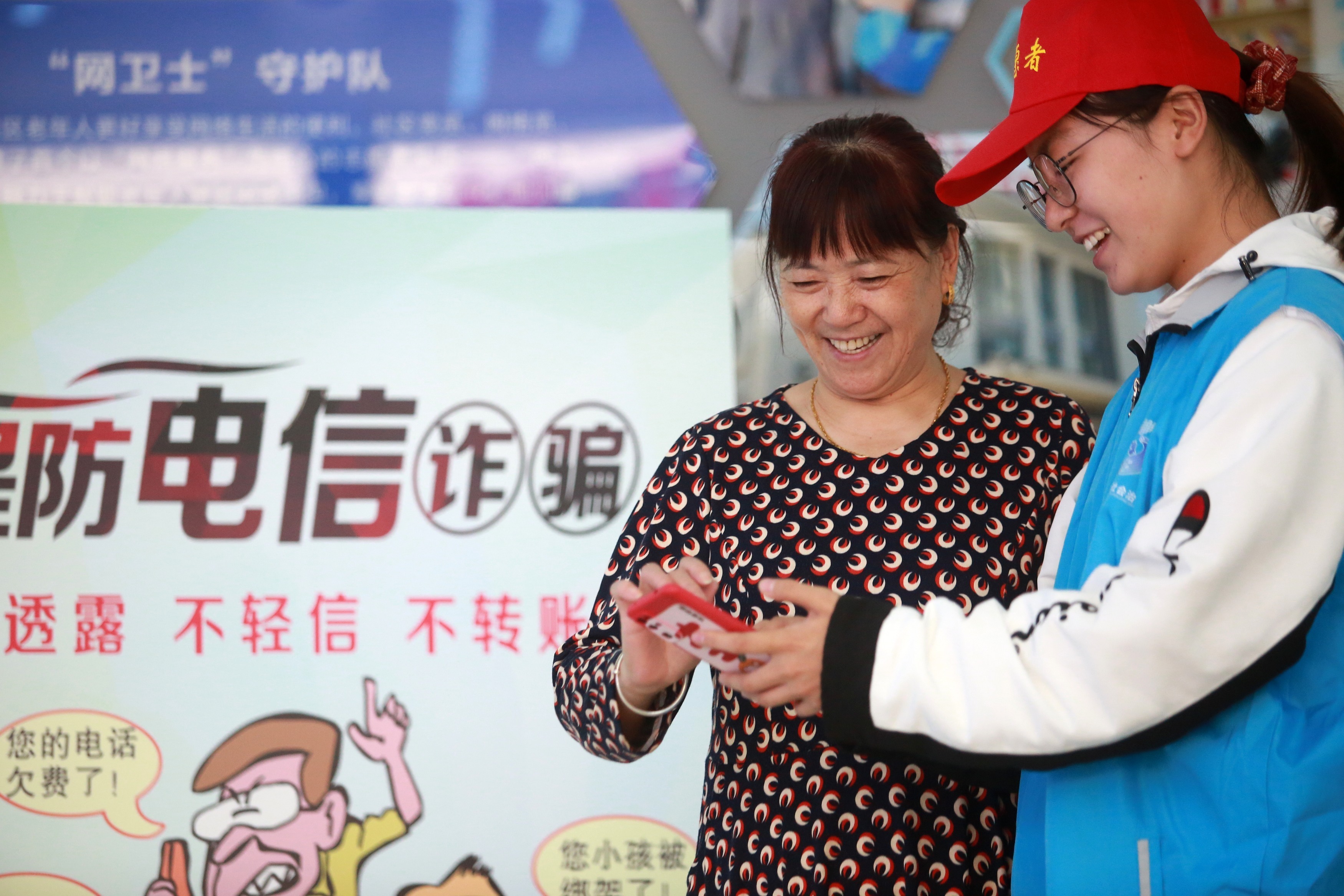 10月12日,扬州市邗江区蒋王社区开展以“网络安全进社区”为主题的国家网络安全宣传周活动,社区志愿者通过发放宣传资料、现场讲解等方式,向居民宣讲电信诈骗的作案方法和招数,讲解电信网络安全常识,增强居民防范电信诈骗意识。
