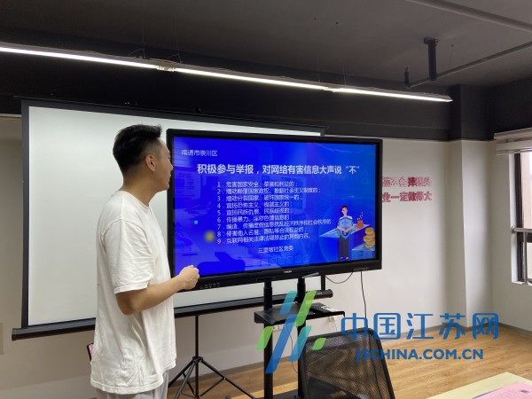 中国江苏网10月16日南通讯 10月15日,南通市文峰街道三里墩社区党委、工会联合会在中江电商港开展了“网络安全进楼宇,筑牢互联网阵地”主题活动。活动采用知识讲座、分发宣传单页、组织观看普法视频等多种形式对辖区内多家互联网企业进行网络安全宣传。