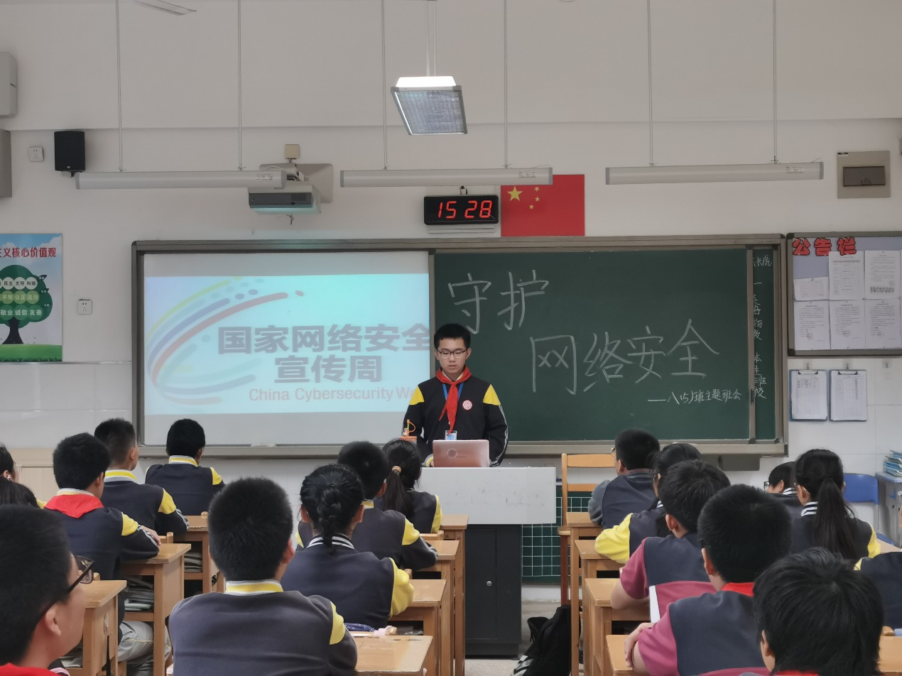各中小学校在电子大屏及电视屏幕上循环推送宣传周宣传素材;召开“网络安全进校园”主题班会,由班主任领学网络安全知识;充分利用信息技术课,通过互动体验的学习方式,培养学生绿色文明健康上网的习惯。