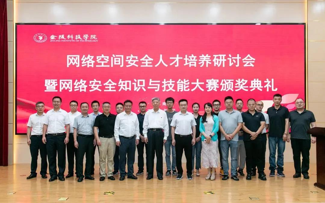 由南京市委网信办指导、金陵科技学院主办的网络空间安全人才培养研讨会暨网络安全知识与技能大赛颁奖典礼举行。南京市委网信办副主任黄益峰,江苏省科协副主席、江苏省信息安全专委会主任李千目,江苏省计算机学会秘书长金莹等应邀参会,金陵科技学院党委书记陈小虎、副校长高永祥及相关职能部门、网络安全学院党政负责人出席会议。