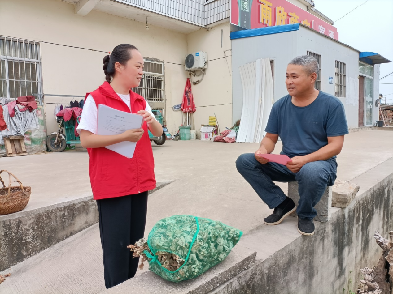 在镇域范围内,网格员们身穿红色马甲,挨家挨户上门走访,发放反诈宣传资料,提醒家长和学生小心最新的诈骗形式,并向他们介绍防诈骗技巧。