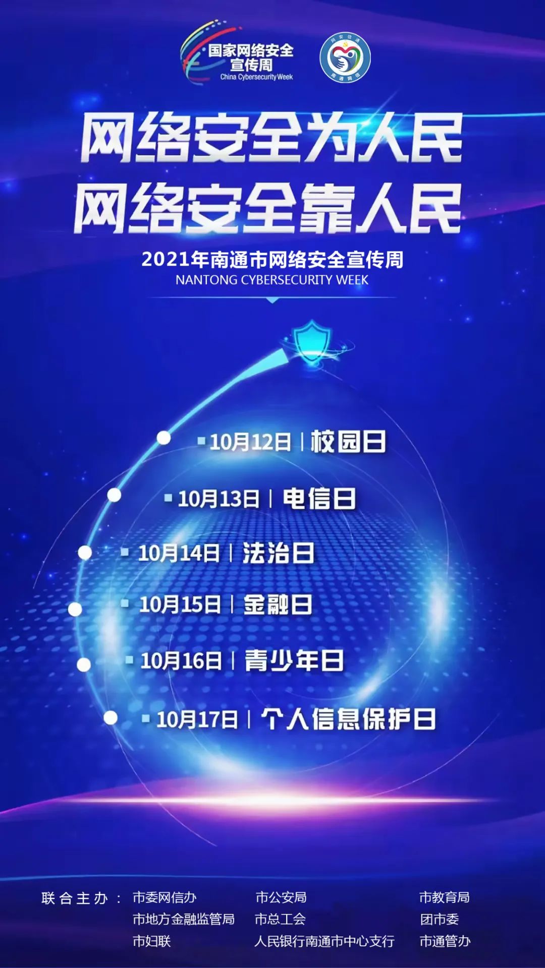 南通市在网络安全宣传周期间,围绕网络安全热点问题、重点领域的六大主题日活动也将有序开展。