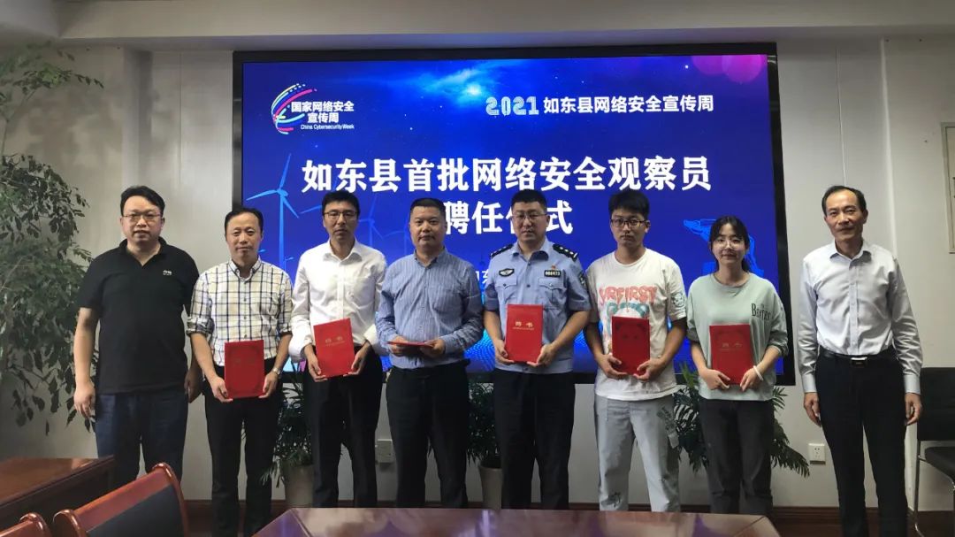 10月14日下午,南通如东县举办首批网络安全观察员聘任仪式,6位来自机关、企业的网络安全观察员受聘上岗。
