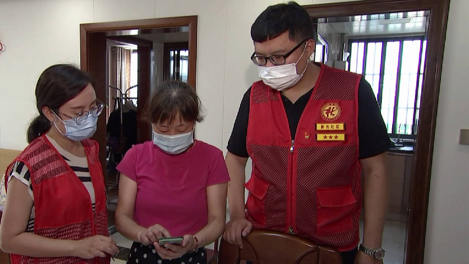 新光社区常住人口1.2万余人,为了确保社区居民注册申请全覆盖,不遗漏,社区工作人员与150名志愿者一起,对辖区内所有居民进行摸排,逐一指导。身穿“红马甲”的志愿者们从早上5点钟出发,深夜11点多才结束,一栋楼一栋楼地宣传,一天下来往往嗓音沙哑,汗水浸湿了衣服。