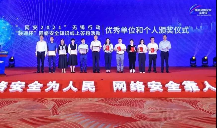 为“网安2021”无锡行动、2021无锡市 “联通杯”网络安全知识线上答题活动的获奖代表颁奖