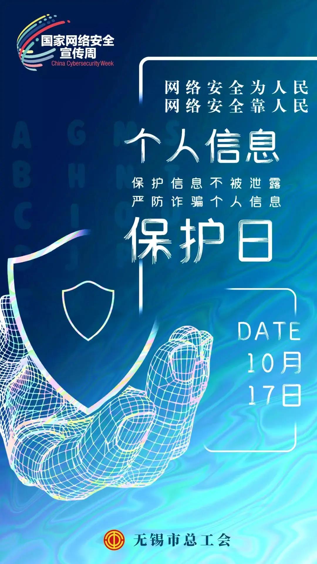 10月11日至17日是国家网络安全宣传周,为全面拓展群众网络安全知识,提升网络安全意识,增强网络防护技能,营造“网络安全为人民,网络安全靠人民”的良好网络氛围,无锡市委网信办积极组织各市(县)区、各单位开展网络安全周集中宣传活动,结合“校园日”“电信日”“法治日”“金融日”“青少年日”“个人信息保护日”等六大主题日开展一系列线上线下活动。