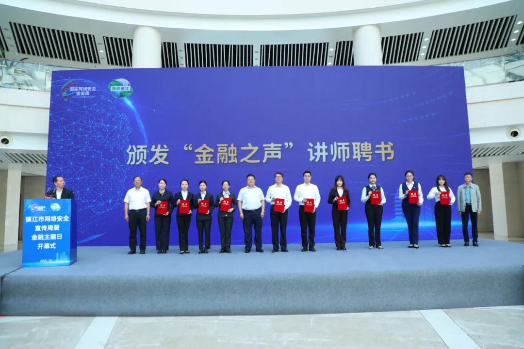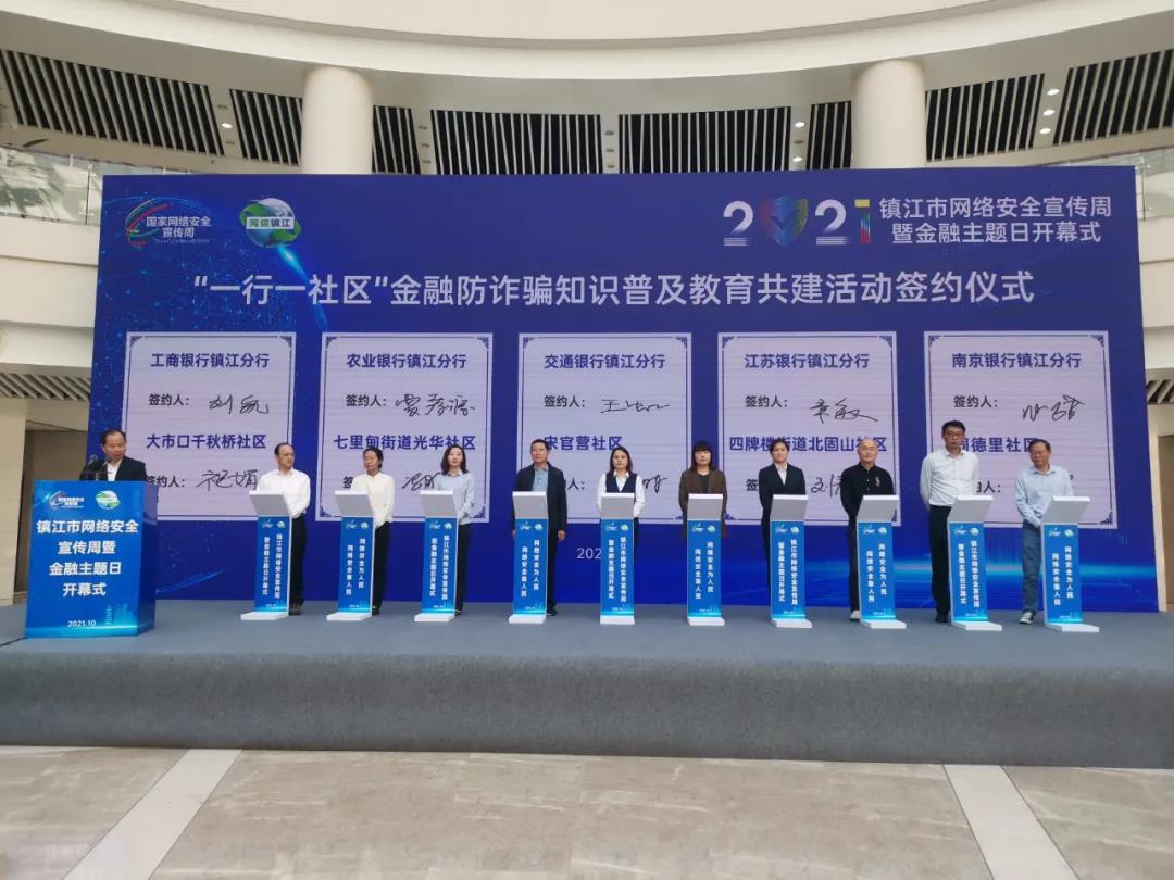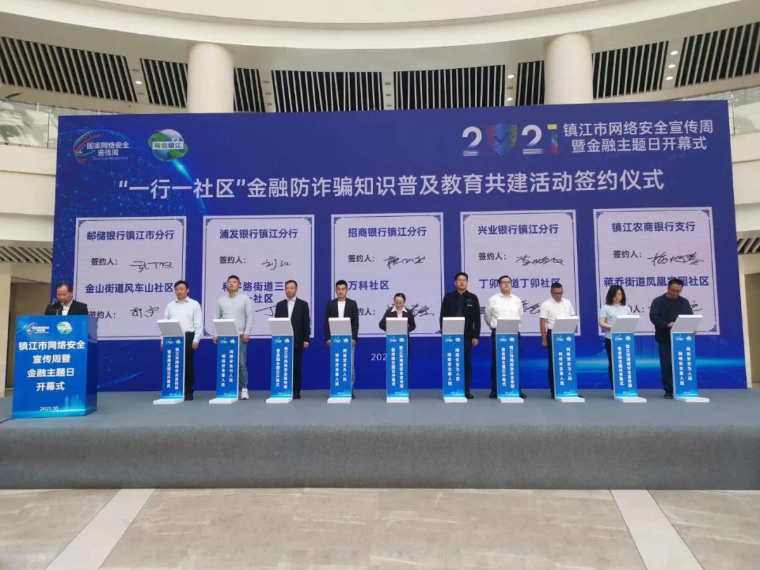 会上播放了网络安全工作专题片,举行了预防金融网络诈骗“金融之声”讲师聘书颁发仪式和“一(银)行一社区”防诈骗知识普及教育共建签约仪式,以及“镇江市网络安全创新与实践基地”揭牌仪式。