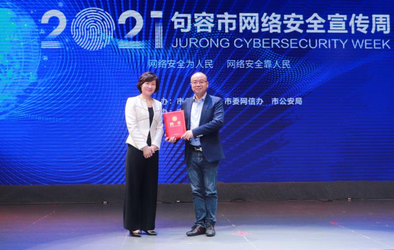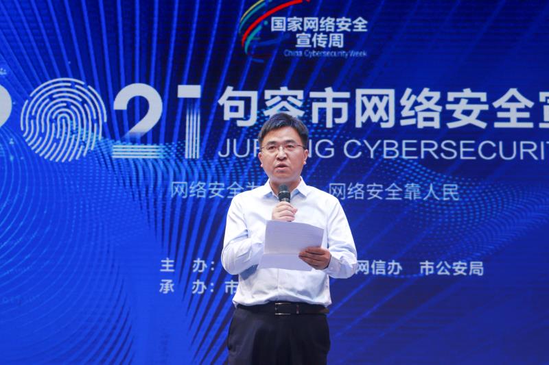 镇江市委网信办副主任蔡国华,句容市委常委、宣传部部长查兆娣,句容市委常委王红芳共同开启2021年句容市网络安全宣传周。