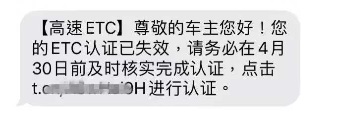 “您的ETC认证已失效,请点击该网址进行激活”,近段时间,办理过ETC的车主是否收到过这样的短信?收到过短信的车主是不是有疑问,这是真的吗?其实,这是一种新型的电信诈骗——冒充ETC认证短信诈骗!