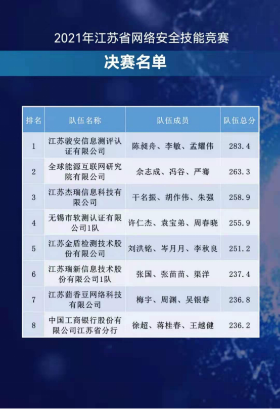 2021年江苏省网络安全知识和技能竞赛晋级决赛名单出炉