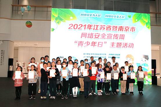 自9月16日起,围绕青少年的身心特点与成长需求,主办方还开展了全市范围内的网络安全宣传主题作品征集,共收到近千份南京青少年投稿的图片、文字及视频作品。部分获奖作者还来到了“青少年日”的活动现场,与会领导分别为一、二、三等奖的获得者颁发了证书,以此鼓励青少年们能积极行动起来,集各方之智、聚众人之力,推广与深植“网络安全为人民,网络安全靠人民”的理念,形成广泛关注、共同参与的浓厚氛围,汇聚维护网络安全的强大合力。