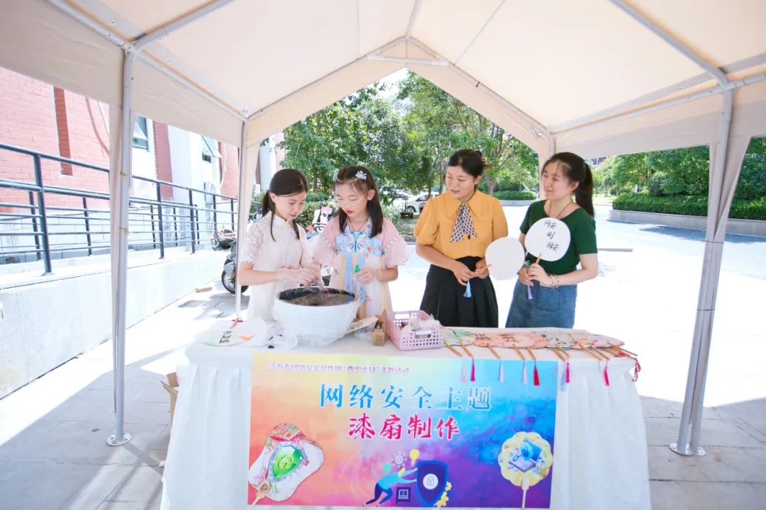 活动前,与会人员现场参观了2024年连云港市青少年网络安全主题作品展,参与“反诈大转盘”等互动环节。