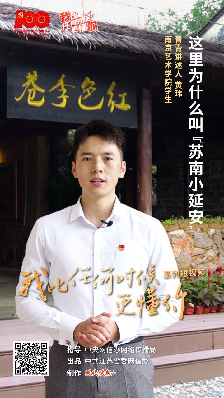 8 月 6 日," 我比任何时候更懂你 " 系列短视频第 13 集《这里为什么叫 " 苏南小延安 "?》上线,本集青青讲述人是南京艺术学院学生黄玮。