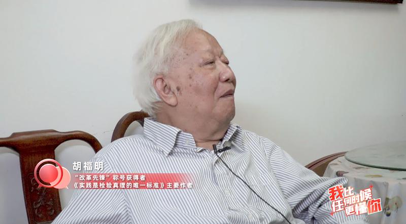 为何会加这两个字?两位青青讲述人前期已做了不少案头工作。为了更清楚了解文章的创作历程,她们还专程拜访了86岁的胡福明老人。胡老头发花白,眼睛也不太好,但他每天请老伴帮忙读报,了解这个世界的变化。提到当年那篇文章,胡老缓缓道来:“文章标题的‘唯一’两个字是从毛主席的观点中分析出来的。毛主席强调,只有实践才是检验真理的标准,这个‘只有’‘才是’就说明(真理)标准只有一个。”