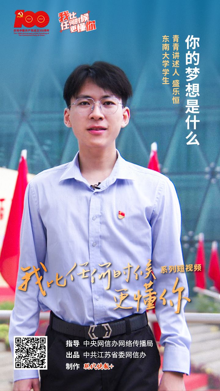 8月22日,“我比任何时候更懂你”系列短视频第29集《你的梦想是什么?》上线,本集青青讲述人是东南大学学生盛乐恒。
