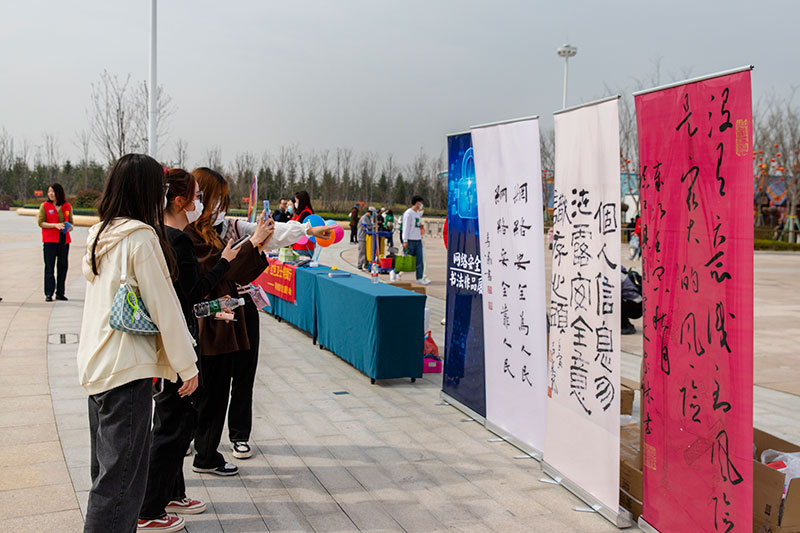 玩趣味转盘、看网络安全书画展、学习网络安全宣传三折页……现场活动精彩纷呈。 “活动改变以往传统‘课堂式’教育,采用趣味的‘沉浸式’游戏互动,既能参与互动游戏,又能学习网络安全知识。这让网络安全意识更加深入人心。”“红色卫士”宣传队负责人说。