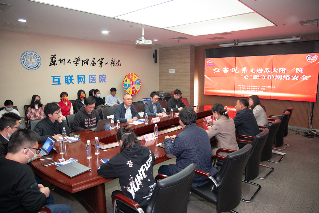 新江苏·中国江苏网讯(记者徐春晖)随着互联网产业飞速发展,医院信息化建设的深入推进,医院信息系统在日常诊疗工作的作用愈发凸显。4月6日下午,江苏天创红客训练营在苏州大学附属第一医院举办“红客说案”走进企业活动,进一步提高医院在网络与信息系统的数据安全防护和保障能力。本次活动由江苏省委网信办指导,苏州大学附属第一医院主办,江苏天创红客训练营承办。