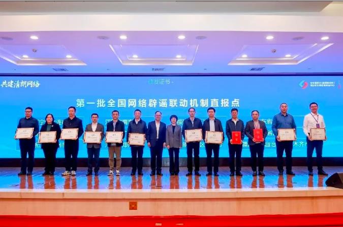 会上,公布了全国首批及第二批共28家网络辟谣联动机制直报点名单,中央网信办违法和不良信息举报中心负责同志为各直报点单位颁发证书。