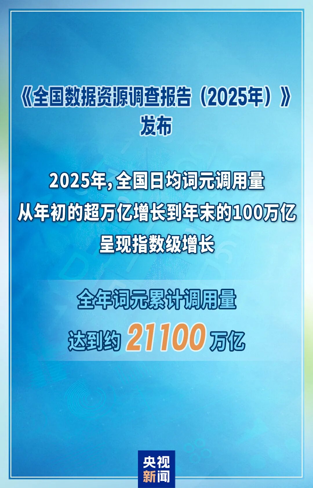 “词元”(Token)是人工智能大模型为了高效处理数据,把数据进行拆分后的最小信息单元。2025年,全国日均词元调用量从年初的超万亿增长到年末的100万亿,呈现指数级增长;全年词元累计调用量达到约21100万亿。