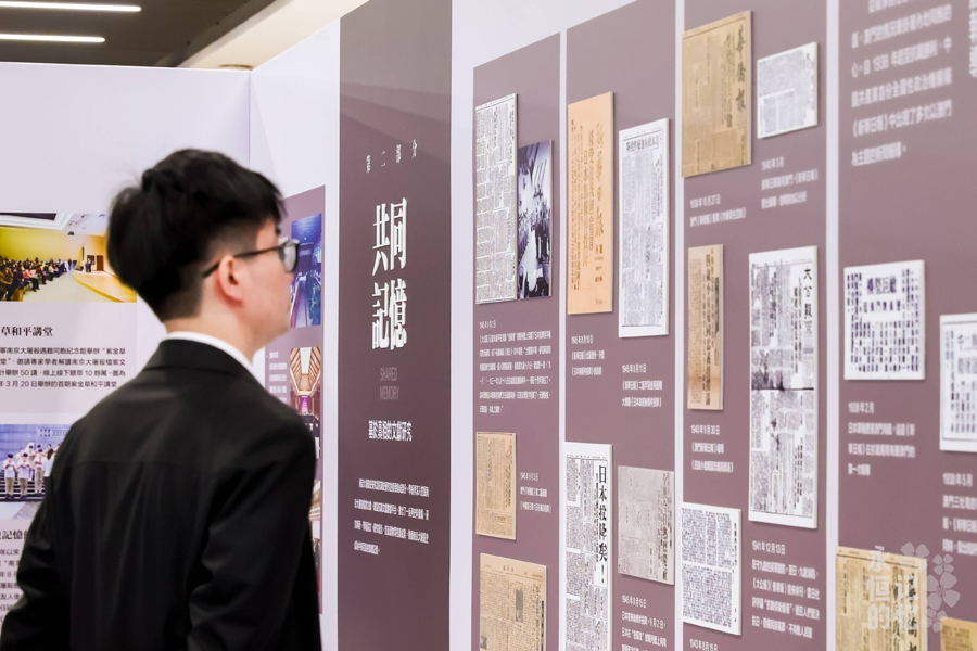 互动区内,以影片《南京照相馆》为背景的“大好河山、寸土不让”展墙让参观者驻足,展墙前展出了《南京照相馆》中作为南京大屠杀案“京字第一号证据”的日军暴行相册。在象征和平的“紫金草”互动专区,澳门师生纷纷手写留言,祈愿和平。开展当天,来自澳门劳校中学、澳门濠江中学等一批学校的师生代表进行了现场观展。