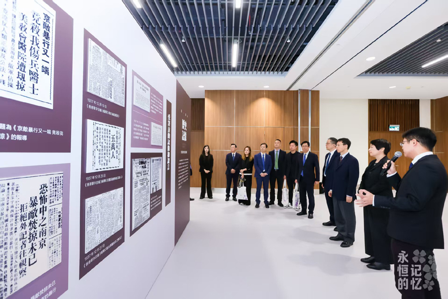 中央政府驻澳门联络办公室宣文部副部长、一级巡视员殷汝涛,澳门特别行政区政府文化局局长梁惠敏,江苏省互联网信息办公室副主任尤健,澳门特别行政区政府文化发展基金行政委员会主席张建洪,新华日报社副总编辑、扬子晚报总编辑刘大颖,侵华日军南京大屠杀遇难同胞纪念馆馆长周峰,澳门口述历史协会会长、澳门理工大学人文及社会科学学院院长林发钦,澳门江苏社团总会创会会长岑展平,澳门新媒体联盟主席、澳门商报社长朱海生共同启动“永恒的记忆”南京大屠杀文献展。