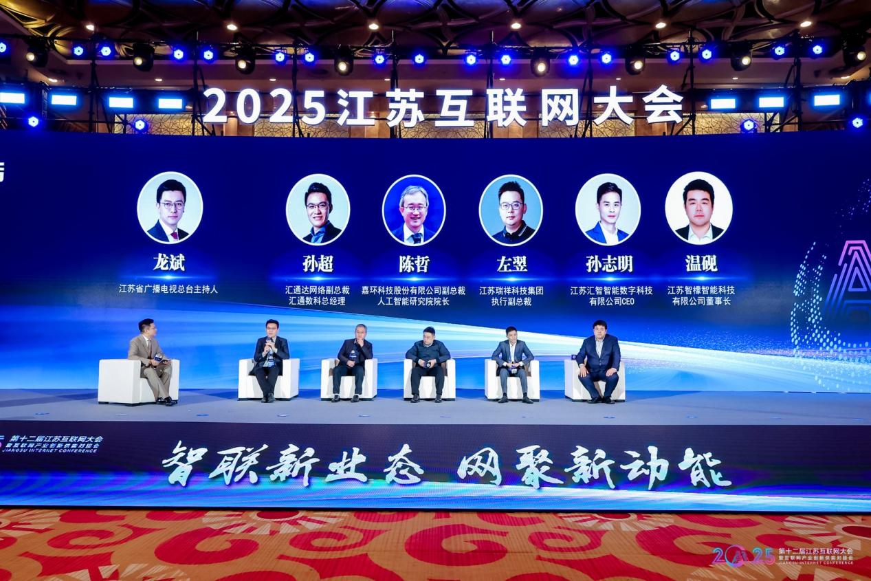 在大会主论坛的热烈氛围中,来自汇通达网络、嘉环科技股份有限公司、江苏瑞祥科技集团、江苏汇智智能数字科技有限公司与江苏智檬智能科技有限公司的多位企业家代表,也围绕AI+产业如何赋能实体经济数字化转型开展圆桌对话,从自身企业所在领域出发探讨了AI在不同场景下的创新应用与发展,为江苏实体经济数字化转型提供了宝贵思路。