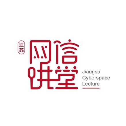 江苏网信讲堂标识巧妙地将图形元素与字体笔画进行同构,利用话筒、网络信号和学员等元素,体现出网信讲堂的特征,即进行科学的网信系统培训。“江苏”以印章形式点题,“网”字里是江苏的首字母J、S,红色代表了网信讲堂的政治引领。
