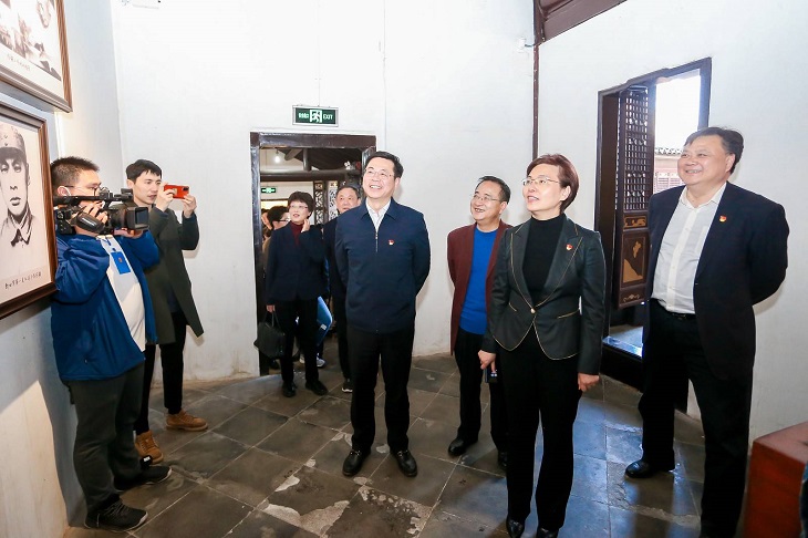 在溧阳新四军江南指挥部纪念馆,省委网信办主任兼省委宣传部副部长徐缨带领全体党员重温入党誓词,开展本次“百年辉煌 e心向党”党史学习教育。现场启动了全省“走好网上群众路线”优秀案例征集展示活动、“百城百网百馆红色寻根行”活动,发布了“初心网络电台”首批精品原创作品。
