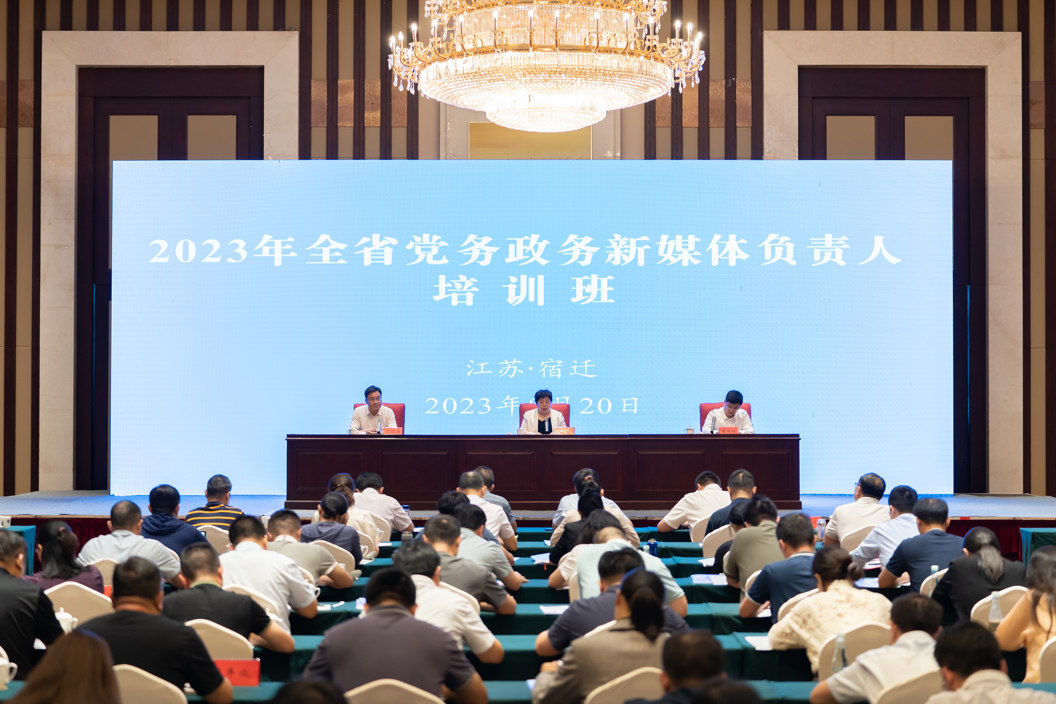 为深入贯彻落实习近平总书记对江苏工作重要讲话精神和省委十四届四次全会精神,推进全省党务政务新媒体健康有序发展,提升各地各部门网上宣传引导能力和水平,9月20日至22日,省委网信办会同省政府办公厅在宿迁举办2023年度全省党务政务新媒体负责人培训班。省有关部门业务处室负责人,省属主要网络媒体负责人,各设区市政府办公室(厅)、市委网信办有关处室负责人和有关县(市、区)政府办公室、网信办负责人100余人参加培训。