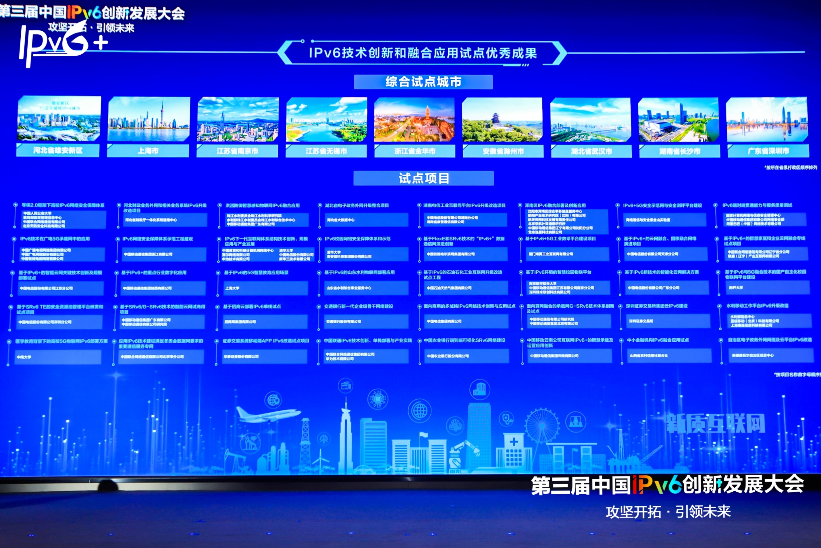 7月7日,国家IPv6技术创新和融合应用试点优秀成果在第三届中国IPv6创新发展大会上发布。其中,优秀综合试点城市9个,江苏省南京、无锡2个综合试点城市入选;优秀试点项目40个,江苏电信“基于IPv6+智能云网关键技术创新及规模部署试点”、华泰证券“证券交易系统移动端APP IPv6改造试点”、南京航空航天大学“基于IPv6环境的智慧校园物联平台”、网络通信与安全紫金山实验室“IPv6+5G安全示范网与安全测评平台建设”4个试点项目入选。