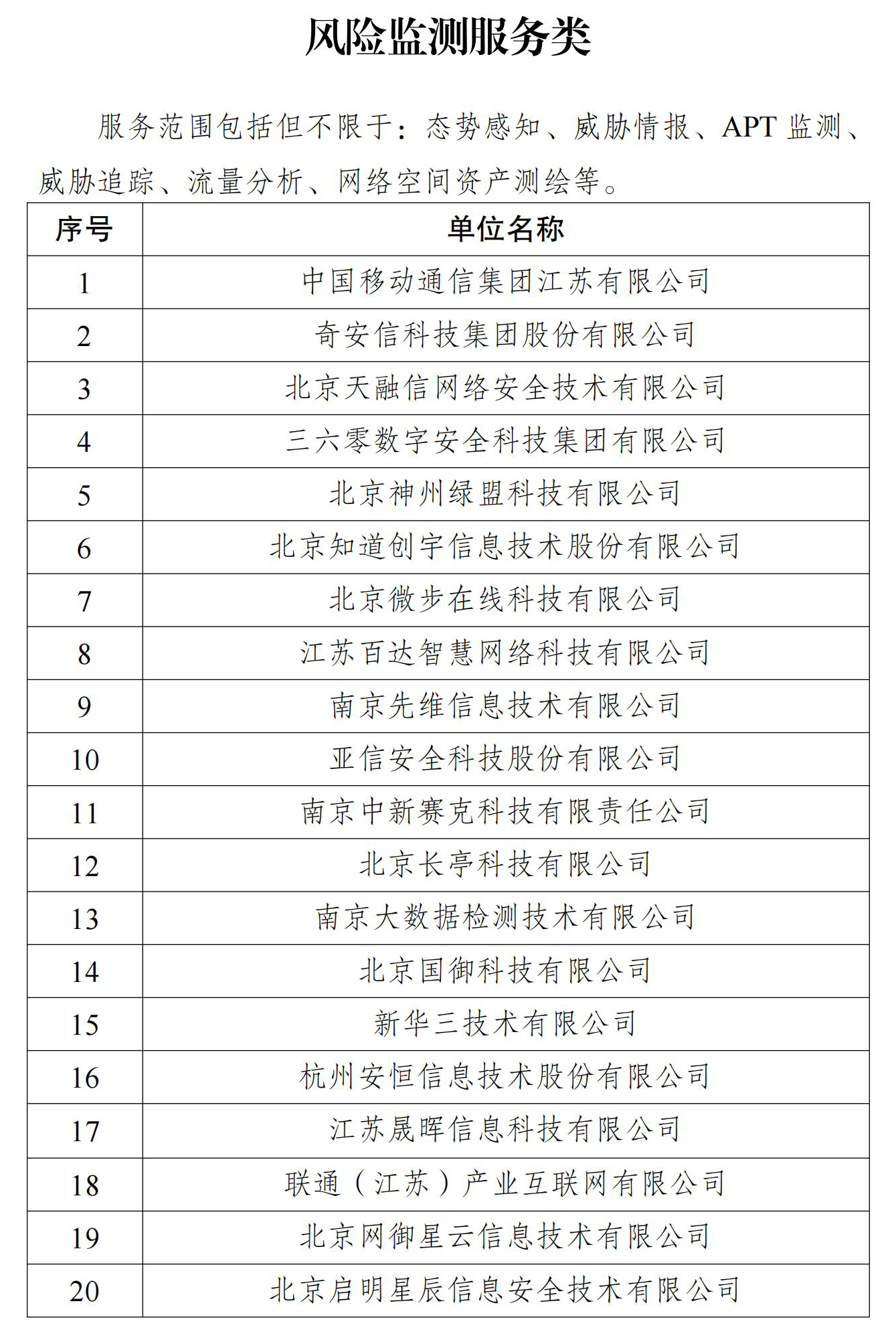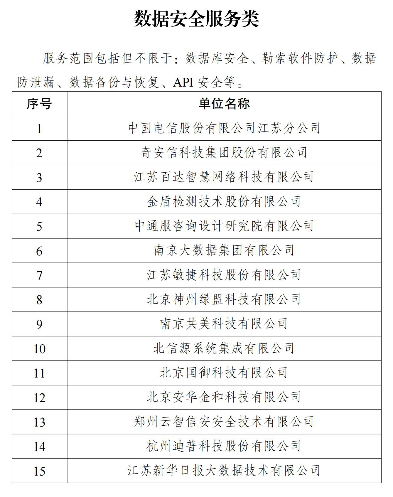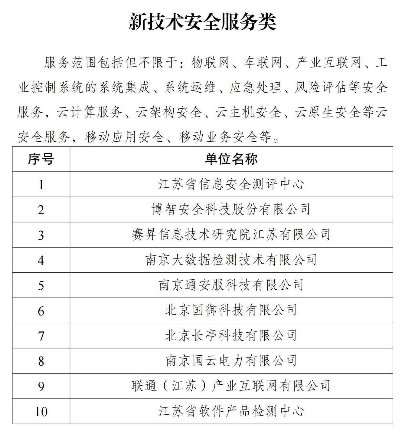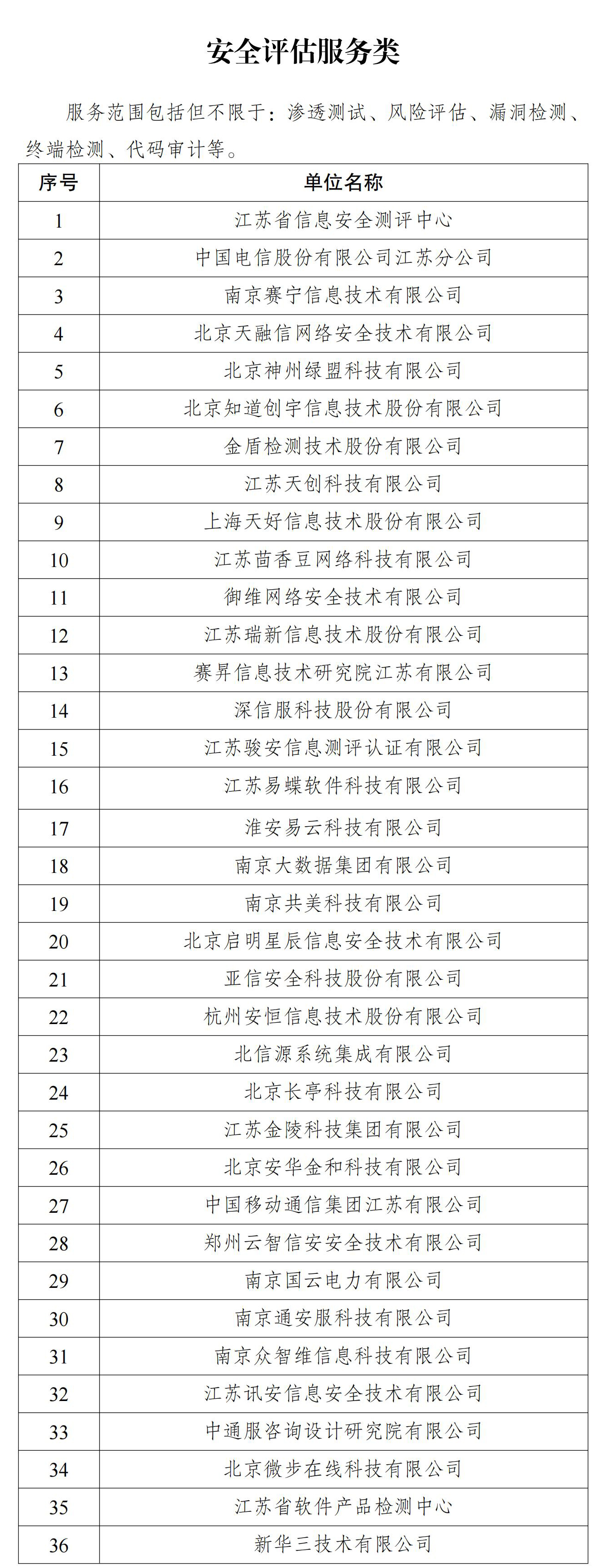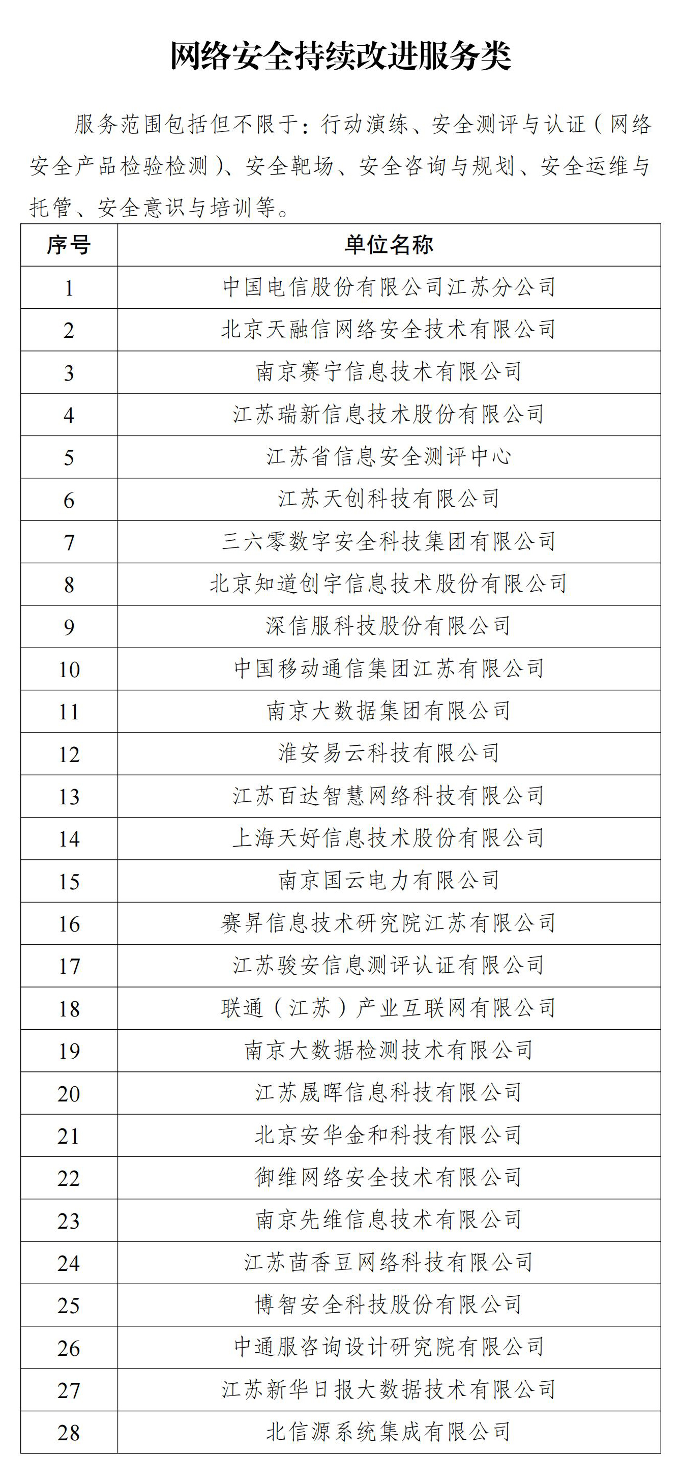 2024年度江苏省网络安全服务资源池入池单位名单公示