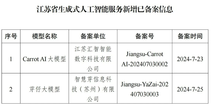 ●江苏省互联网信息办公室关于发布生成式人工智能服务已备案信息的公告(4月12日)