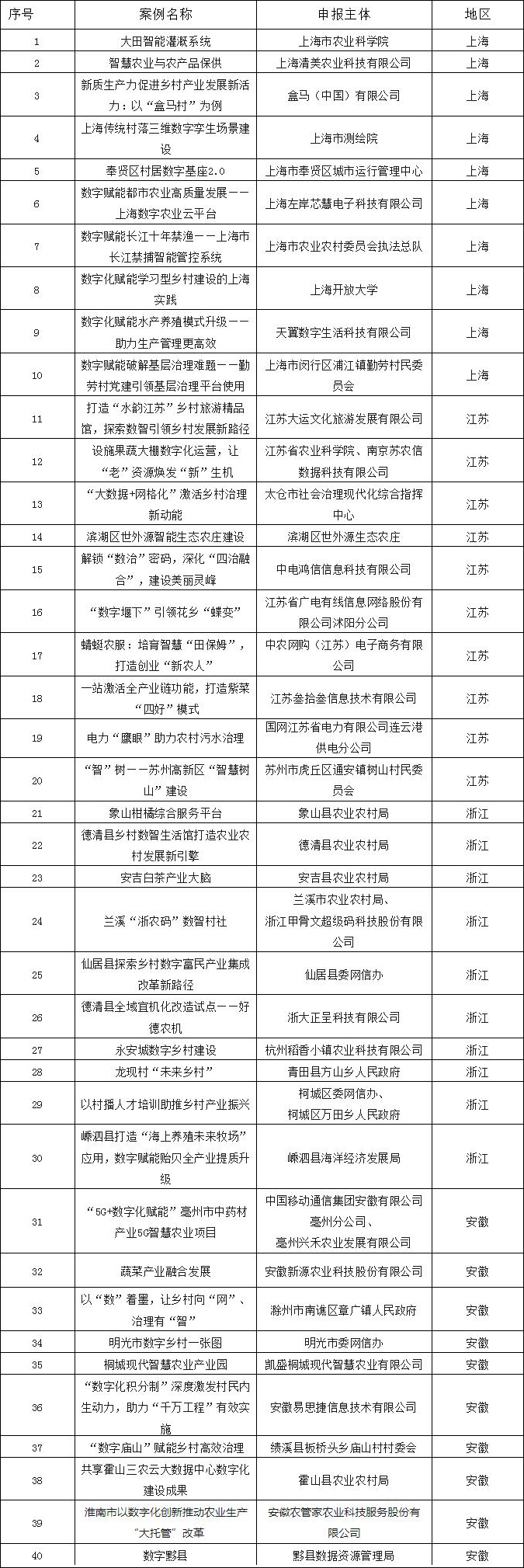 2024年长三角数字乡村建设典型案例拟入选名单