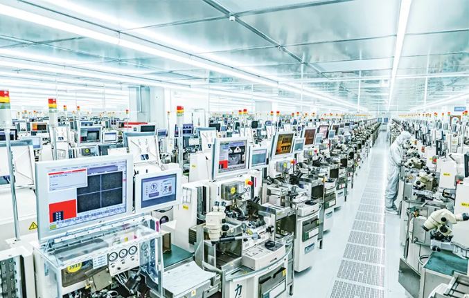 江苏瞄准新领域新赛道,聚焦有发展优势的16个先进制造业集群和50条重点产业链,加快发展新质生产力。其中,半导体产业已形成涵盖上游基础材料设备、中游制造、下游应用的全链条产业集群,产业规模稳居全国前列,是全国半导体产业的重要基地。图为2024年9月25日,苏宿工业园区内的江苏长电科技(宿迁)有限公司,专业技术工人在智能控制生产线上操作。视觉江苏网供图 陈红/摄