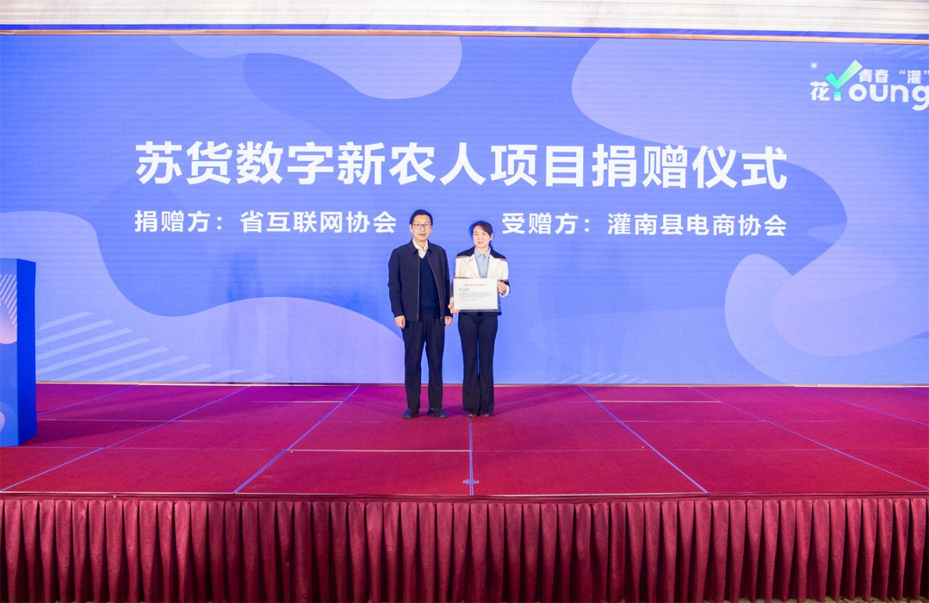 今年以来,伴随苏货数字新农人赋能乡村振兴专项行动的实施,全省70多位数字新农人上线,将乡村的故事和农产品更生动、更广泛地传播出去,帮助农民朋友更好地融入数字时代,开启乡村振兴的新篇章。活动现场,赵明将苏货数字新农人公益账号赠予灌南县电商协会,灌南县电商协会会长赵京辉代表受捐方接受捐赠。接下来,灌南县电商协会将组织行业力量,开展常态化资源对接,让苏货数字新农人公益账号更好服务灌南县新农人群体。