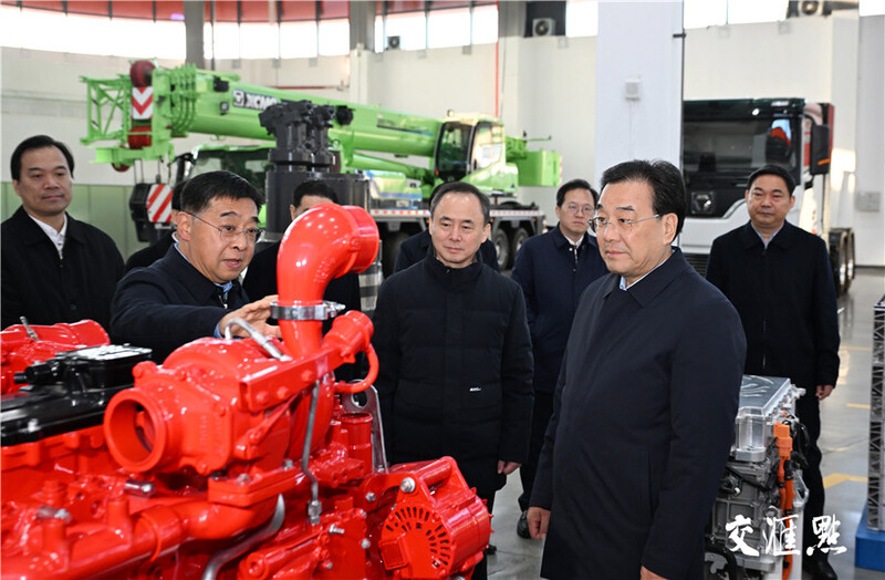 徐州工程机械是首批国家先进制造业集群,也是该市的“一号产业”。汇智高端工程机械创新中心由徐工集团牵头成立,集聚了众多知名企业和高校院所。信长星走进展厅和实验室,详细了解创新中心运营机制和传动、液压、智能控制、新能源等领域研究成果,观摩远程驾舱演示。他指出,通过链主企业整合上下游资源,组建创新联合体,促进产学研深度融合,是提升产业集群核心竞争力的重要路径。要坚持开放创新,着力构建覆盖主机、零部件、基础材料的全产业链协同创新体系,在关键共性技术上取得更大突破,推动工程机械行业向高端化、智能化、绿色化迈进。登高平台消防车、举高喷射消防车、云梯消防车……20余款装备依次排列、伸展长臂,蔚为壮观。在徐工消防安全装备有限公司,信长星询问产品性能、市场销售等情况。他深有感触地说,徐工五次刷新登高平台消防车亚洲纪录,成为全球为数不多能够自主研制百米高端消防车的企业,这是勇攀科技高峰、抢占行业制高点的生动写照。当前,经济发展机遇与挑战并存,我们要坚定信心、保持定力,在攻坚克难中实现新的跨越发展。希望企业深耕细分市场,做大做强应急救援装备产业,更好守护社会安定、百姓安宁。