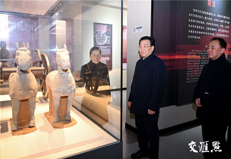 徐州汉文化研究交流中心主要从事汉文化的研究阐释、展览展示和交流研讨等。信长星参观历史遗迹,仔细询问文物保护利用情况。他指出,中国文化源远流长,中华文明博大精深,两汉文化是其中的瑰宝。徐州是两汉文化的重要发祥地和集萃地,要秉持敬畏历史、敬畏文化之心,加强文物保护利用和文化遗产保护传承,深入开展学术研究与交流,丰富展陈方式和体验活动,让人们更好地感受“楚韵汉风、南秀北雄”的城市特质和深厚底蕴。