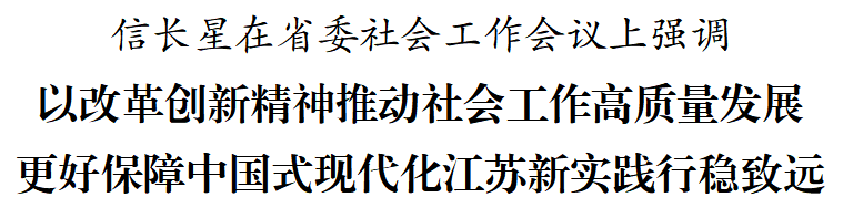 12月27日,省委社会工作会议在南京召开。省委书记信长星出席会议并讲话。他强调,要深入学习贯彻习近平总书记关于社会工作的重要论述和重要指示精神,认真落实中央社会工作会议精神,坚持党的领导,坚持以人民为中心,以改革创新精神推动社会工作高质量发展,更好保障中国式现代化江苏新实践行稳致远。
