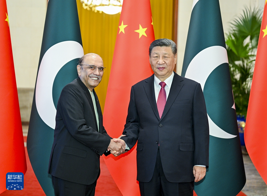 扎尔达里表示,巴基斯坦和中国是亲密邻邦,更是全天候的好朋友、好伙伴。巴中友谊历经风雨,两国人民的心始终紧紧相连。无论形势如何变化,巴方都将毫不动摇同中方站在一起。巴方感谢中方为巴经济社会发展提供无私帮助,愿学习中国成功经验,推动中巴经济走廊和各领域合作高质量发展,助力巴基斯坦实现工业化和现代化。在习近平主席英明指引下,中国在国际事务中发挥越来越大的引领作用,日益成为维护世界和平、稳定、繁荣的重要力量。巴方愿同中方密切配合,坚持多边主义,维护自由贸易,促进两国和广大发展中国家的共同利益。
