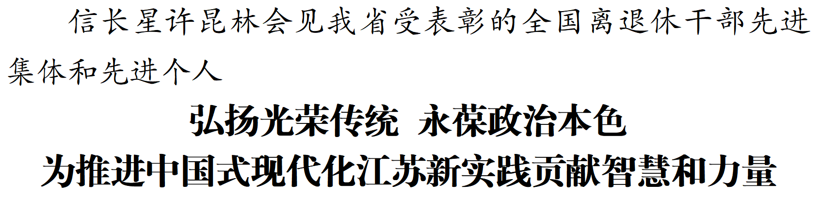 信长星说,离退休干部是党和人民的有功之臣,是党和国家的宝贵财富。习近平总书记对老干部工作高度重视,党的十八大以来,先后3次接见全国离退休干部先进集体和先进个人代表并作出重要指示,多次给老党员、老战士、老教授回信,充分体现了对广大离退休干部的关心关怀。此次受表彰的先进集体和先进个人,是全省离退休干部的优秀代表,是全省党员干部的学习榜样。大家不顾年事已高,不辞辛劳、不图名利,用实际行动关心支持江苏各项事业发展,彰显着对党忠诚、不忘初心、牢记使命、永远奋斗的政治本色,让我们深受感动、深受教育。