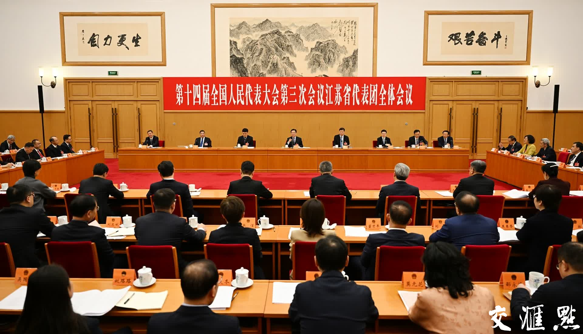十四届全国人大三次会议江苏代表团3月3日下午举行第一次全体会议。代表们一致推选信长星为江苏代表团团长,许昆林、张忠、储永宏、马欣、胡广杰、樊金龙、夏心旻为副团长。
