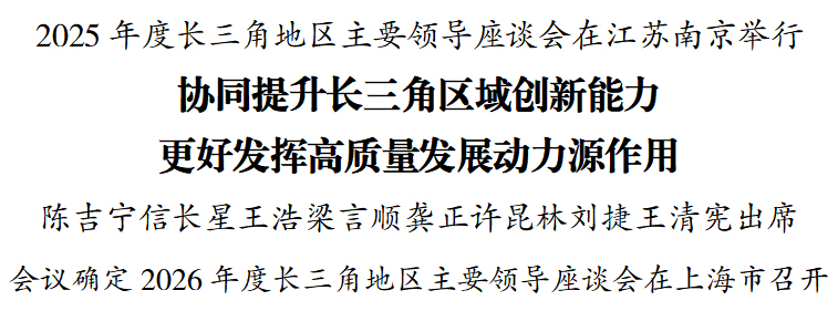 会议确定,2026年度长三角地区主要领导座谈会在上海市召开。