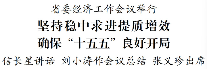 12月22日,省委经济工作会议在南京举行。会议深入学习贯彻中央经济工作会议精神,总结今年经济工作,分析当前经济形势,部署明年经济工作。省委书记信长星讲话,省长刘小涛作会议总结,省政协主席张义珍出席。